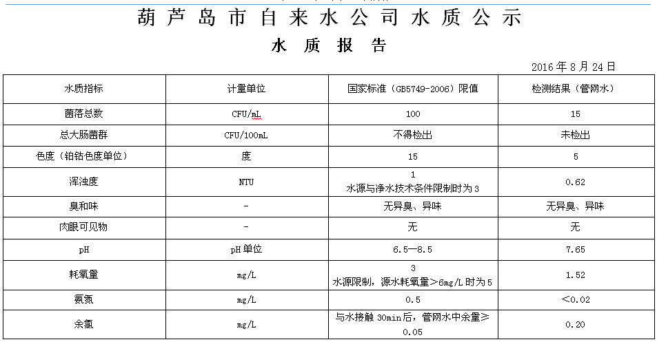 2016年8月第四周 水質(zhì)報告