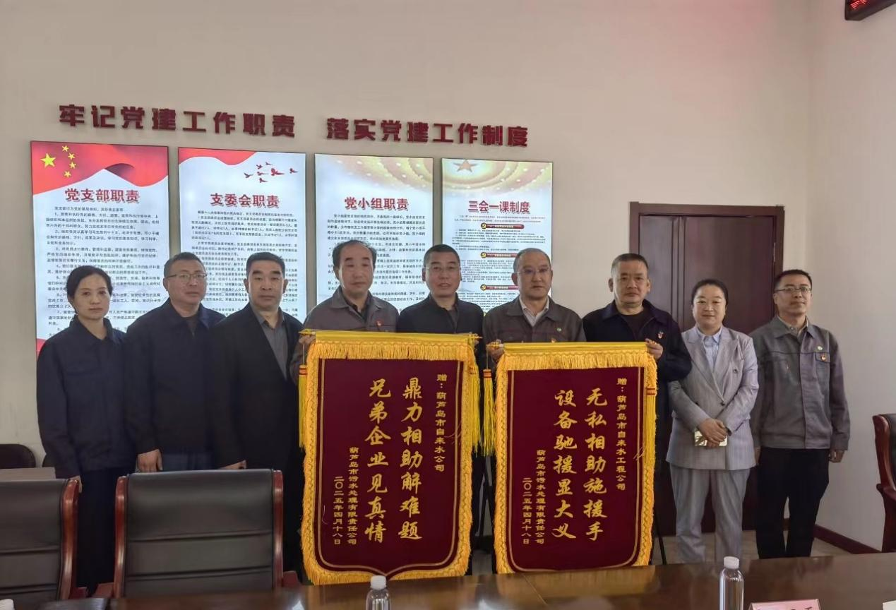 市污水處理有限公司向自來水公司贈送錦旗
