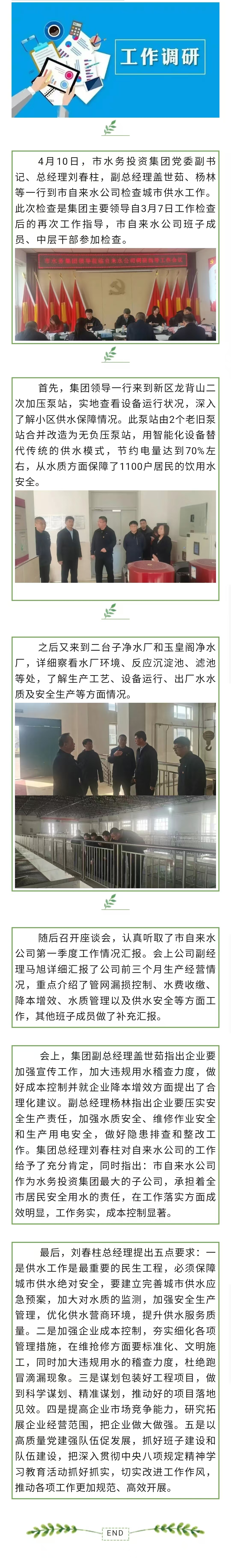 市水務(wù)投資集團主要領(lǐng)導(dǎo)到市自來水公司檢查城市供水工作