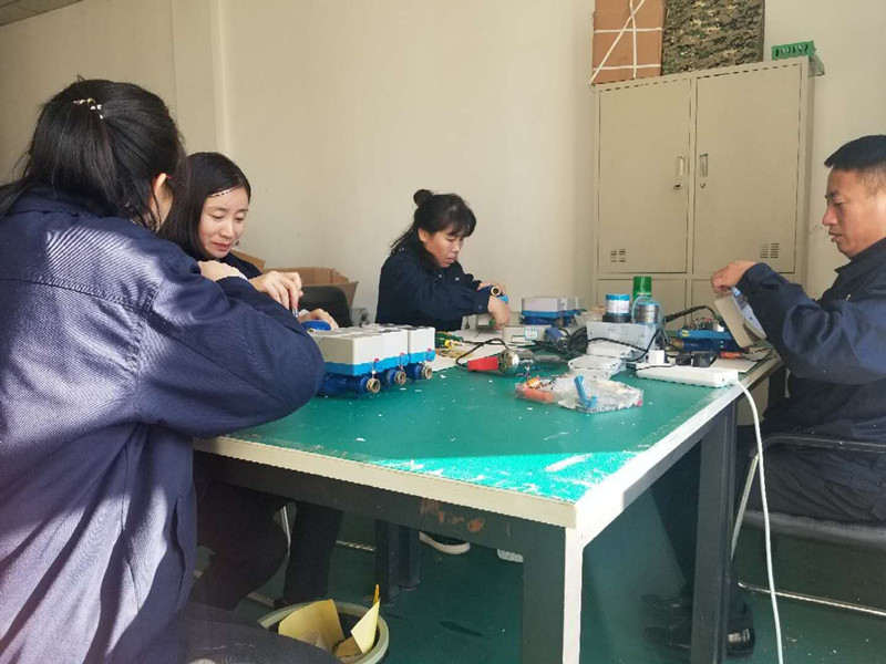 以往水表達到使用年限,都是直接以廢品方式進行處理。今年年初,水表檢定站派出四名檢定員到山東冠翔水表廠參觀,學(xué)習(xí)了智能水表維修、售后的先進技術(shù)。由于舊水表陸續(xù)達到使用年限,需要做更換電池、線路板、玻璃罩、護蓋等處理,他們根據(jù)檢定站的實際情況做了進一步的研究和創(chuàng)新,開始進行舊表翻新工作。